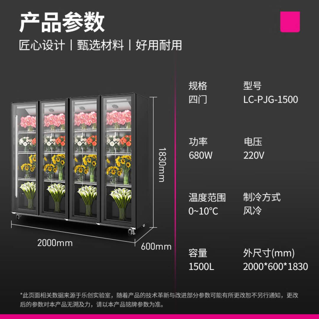 乐创(lecon)商用鲜花保鲜柜大容量风冷鲜花保鲜冷藏冰箱冰柜立式展示柜 自动回弹升级款四门LC-PJG-1500