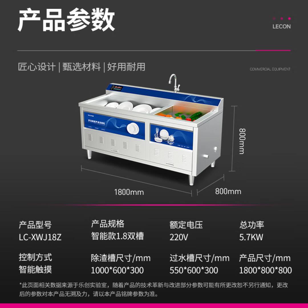 乐创(lecon)超声波洗碗机商用全自动大型家用洗碟机酒店用1.8米超声波洗碗机 智能款双槽清洗 LC-XWJ18Z