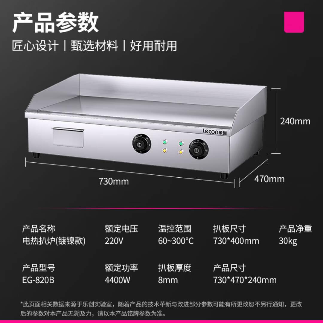 乐创(lecon)扒炉商用手抓饼机铁板鱿鱼煎牛排烤冷面铁板烧加厚电扒炉电热标准款镀镍 EG-820B【一价无忧】