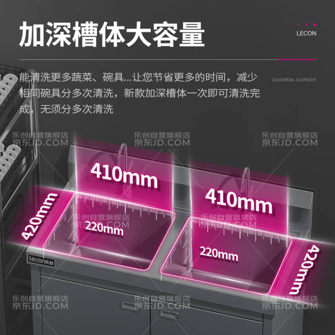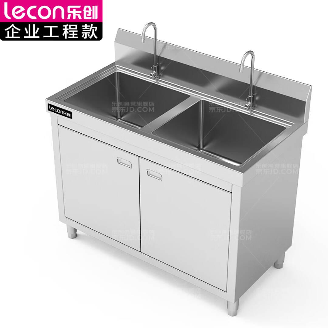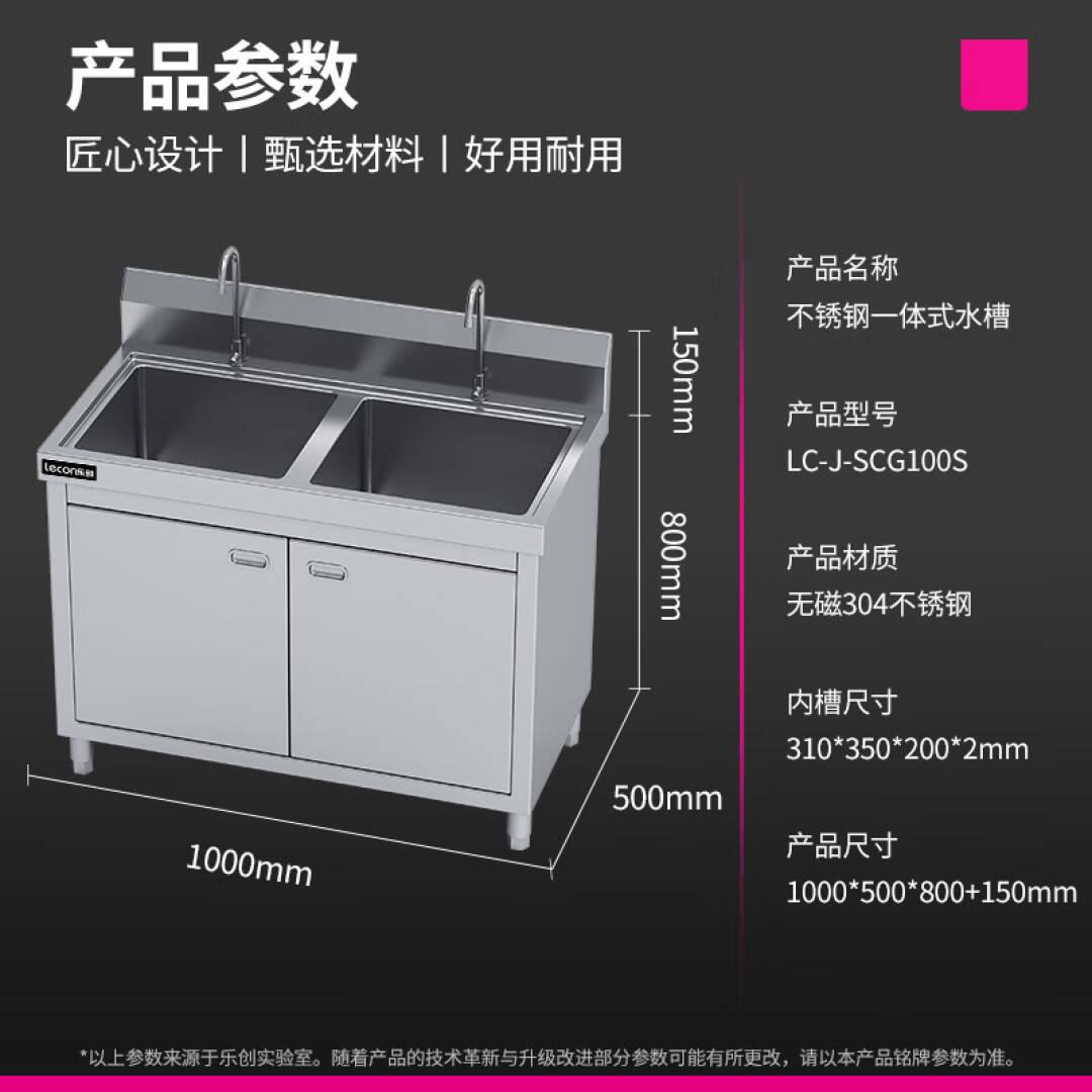 乐创(lecon)商用水池柜 304不锈钢水池柜子一体式水槽 1000*500*800mm 双池特厚工程款 LC-J-SCG100S 单位:台