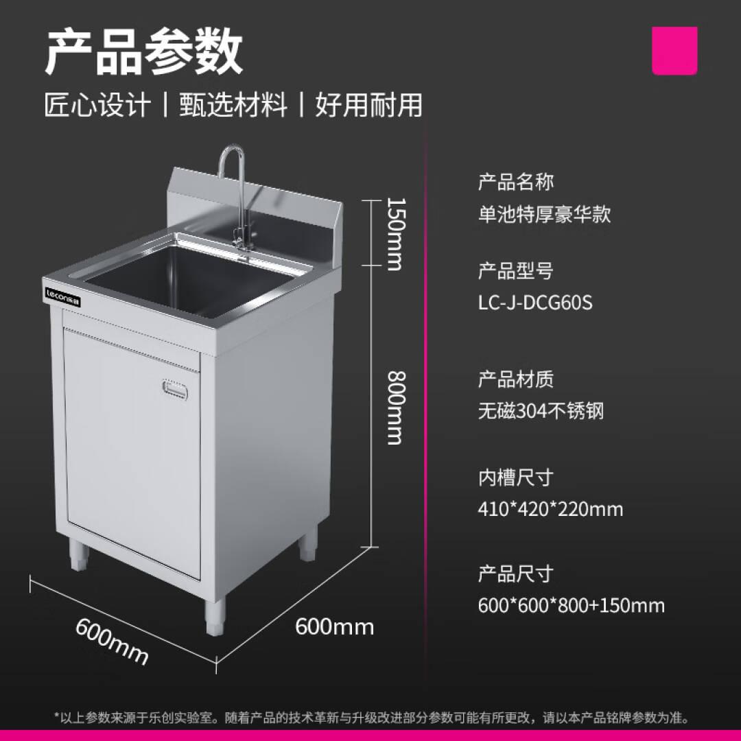 乐创(lecon)商用水池柜 304不锈钢水池柜子一体式水槽 600*600*800mm 单池特厚工程款 LC-J-DCG60S 单位:台