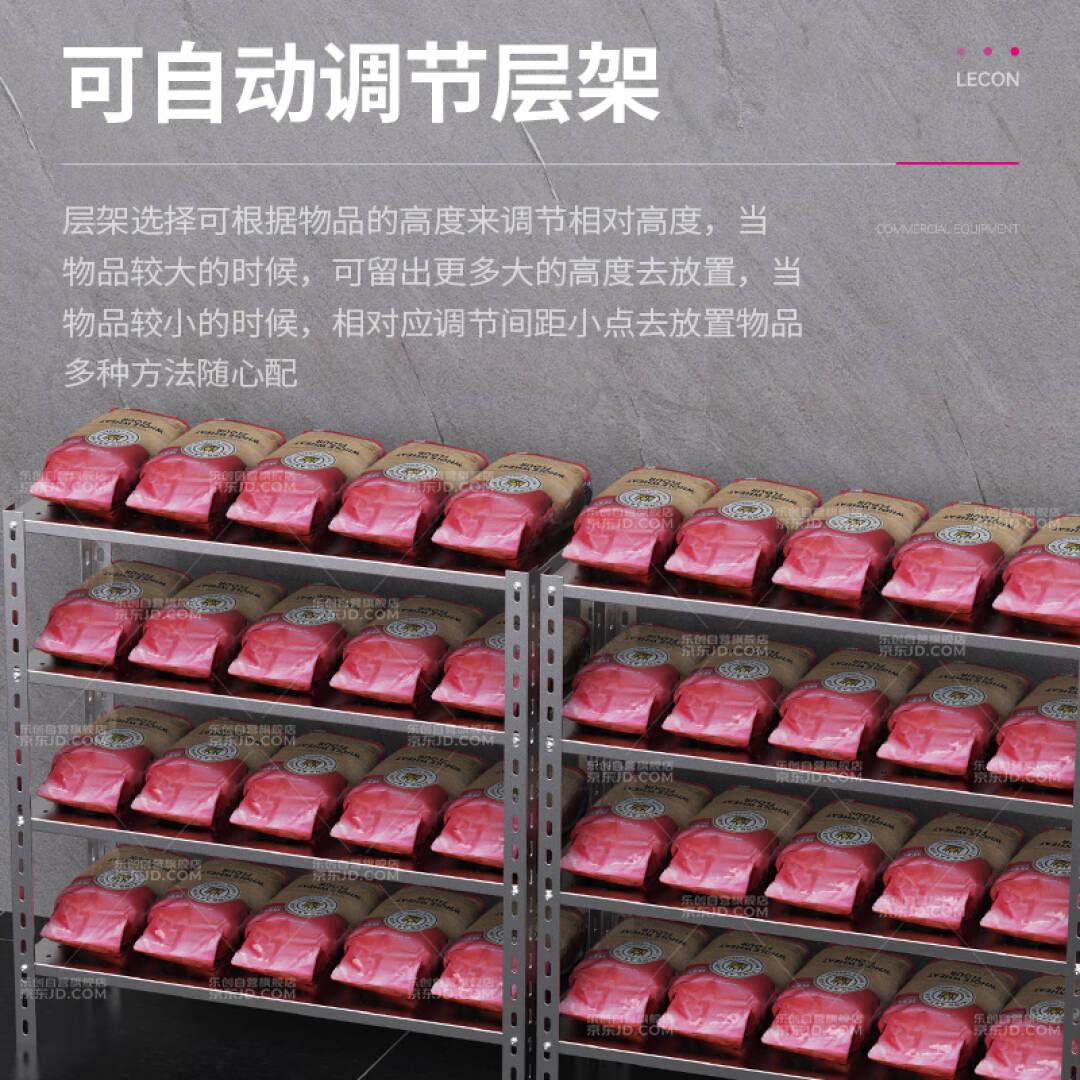 乐创(lecon)商用货架四层201不锈钢可调节工程款冲孔储物货架厨房置物架收纳架子1.2*0.5*1.55米 LC-P-FPR-125