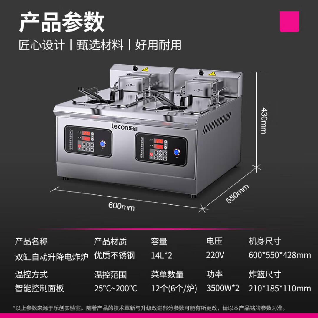 乐创(lecon)电炸炉商用双缸台式全自动升降大容量电炸炉电炸锅商用油炸小吃薯条油炸炉 JDZL-2ST