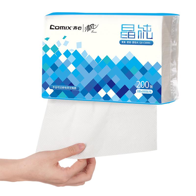 齐心 QX-CS0001 擦手纸 齐心&清风联名款 1层 200抽/包 20包/箱 白 单位:箱