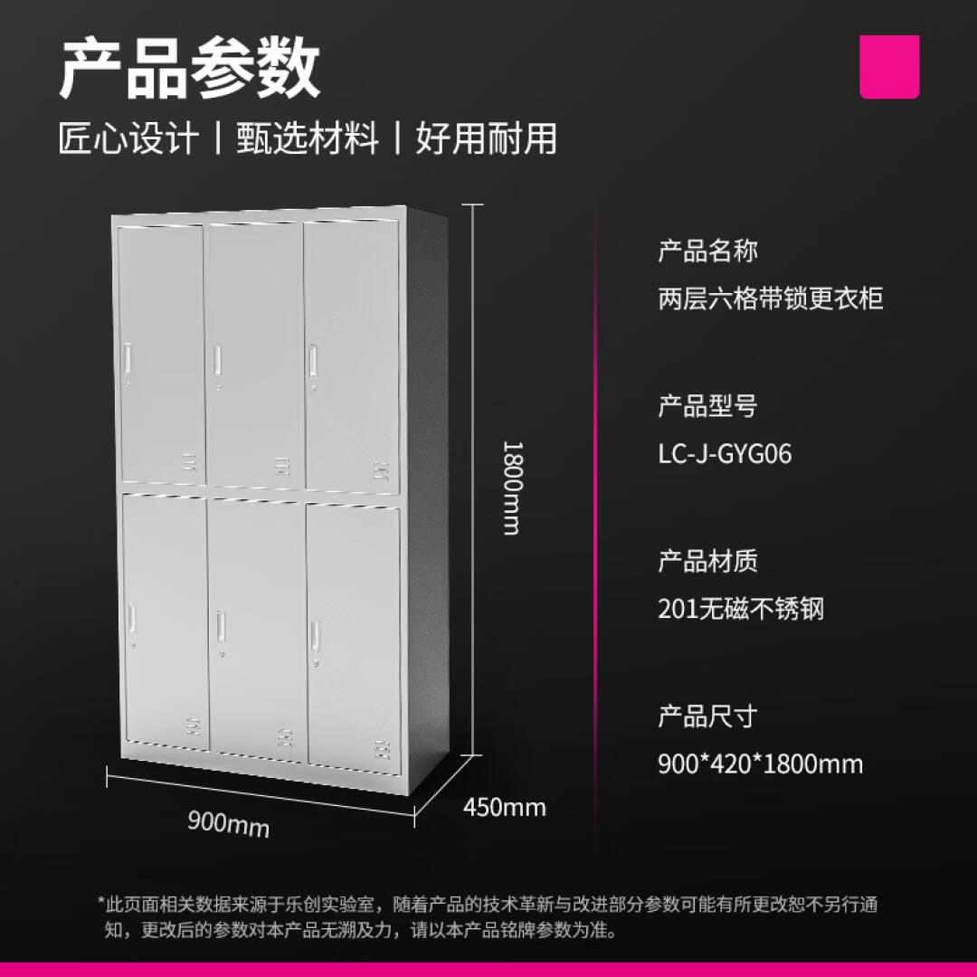 > 乐创(lecon)商用更衣柜201不锈钢带钥匙锁两层六格 LC-J-GYG06