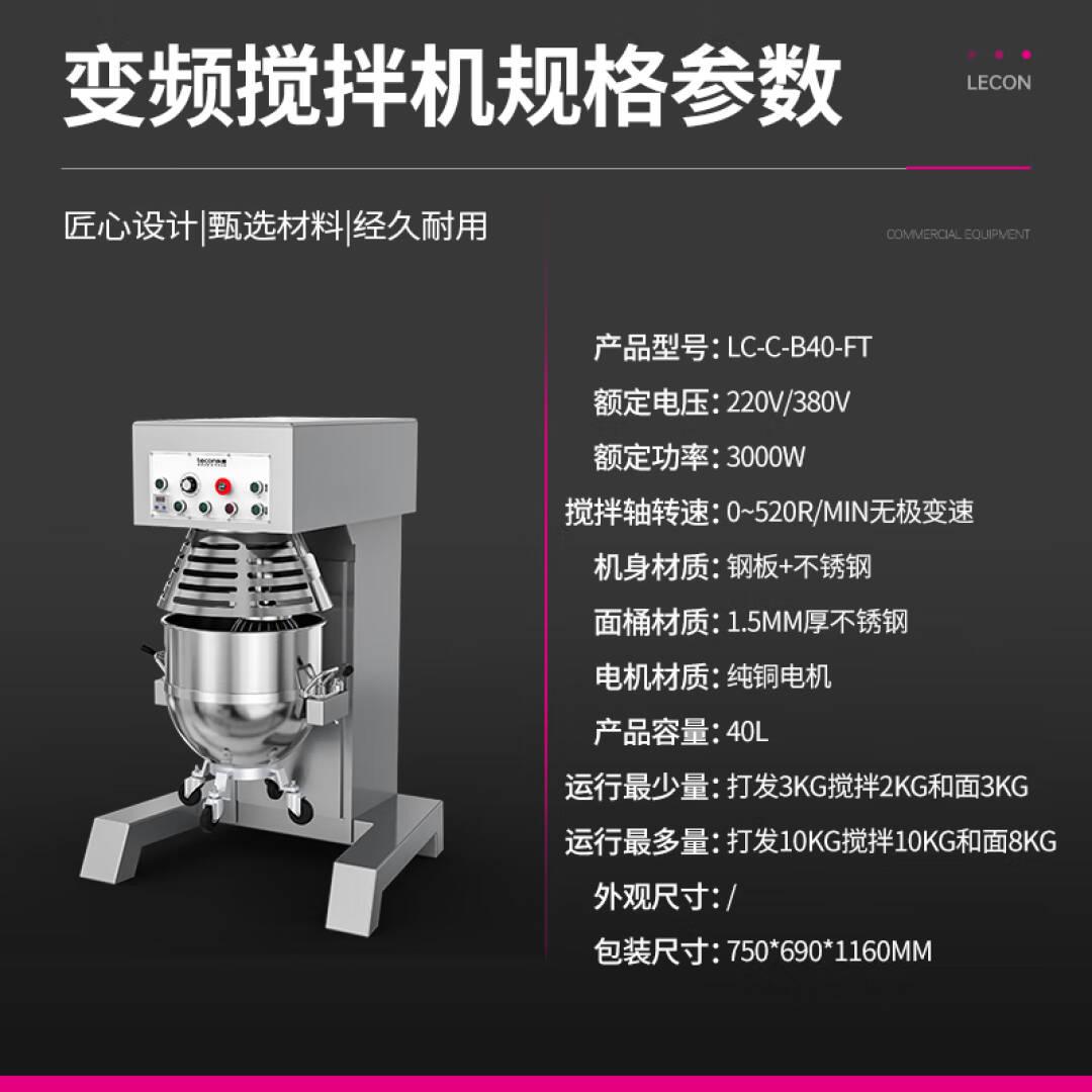乐创(lecon)搅拌机商用和面机商用厨师机多功能打蛋机大容量打面粉馅料搅面机LC-C-B40-FT整机钢板材质