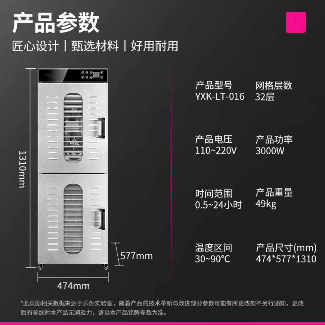 乐创(lecon)烘干机食品干果机商用食品药材水果烘干机不锈钢蔬菜风干机32层干果机 YXK-LT-016