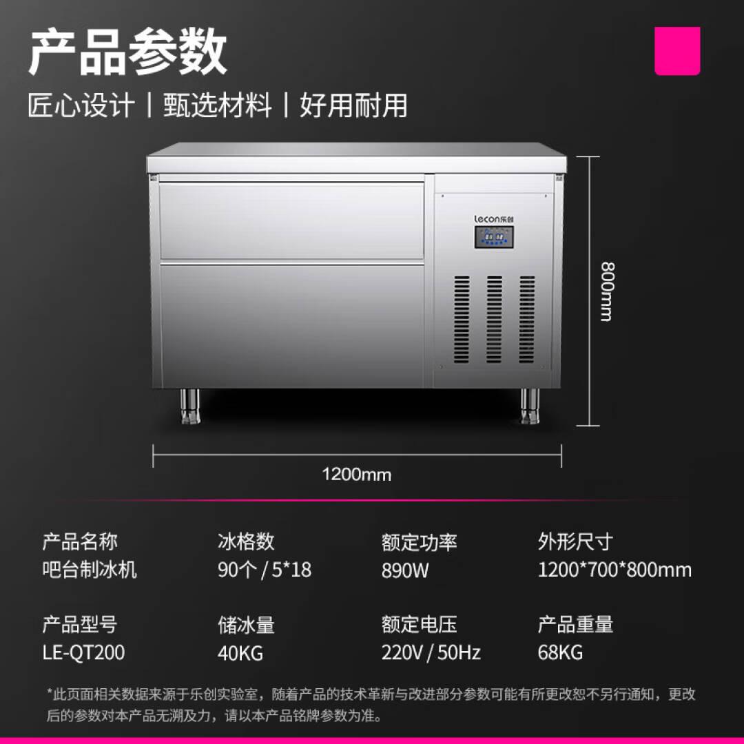 乐创(lecon)吧台式商用制冰机大容量商用不锈钢操作台奶茶店设备水吧台制冰机商用 全自动制冰机 LE-QT200