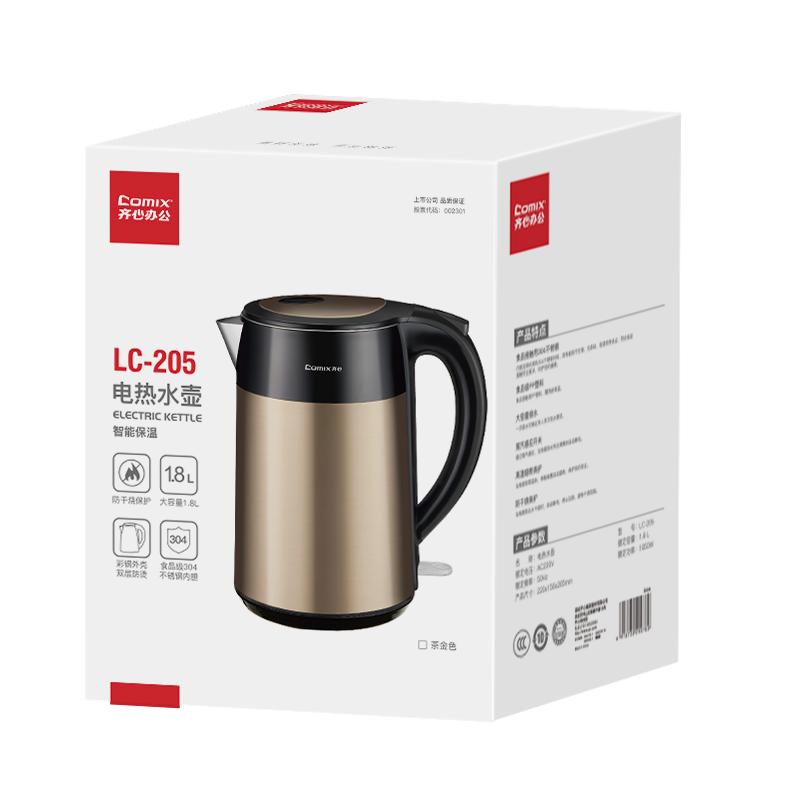 > 齐心 LC-205 保温电热水壶 1.8L 茶金色 单位:个