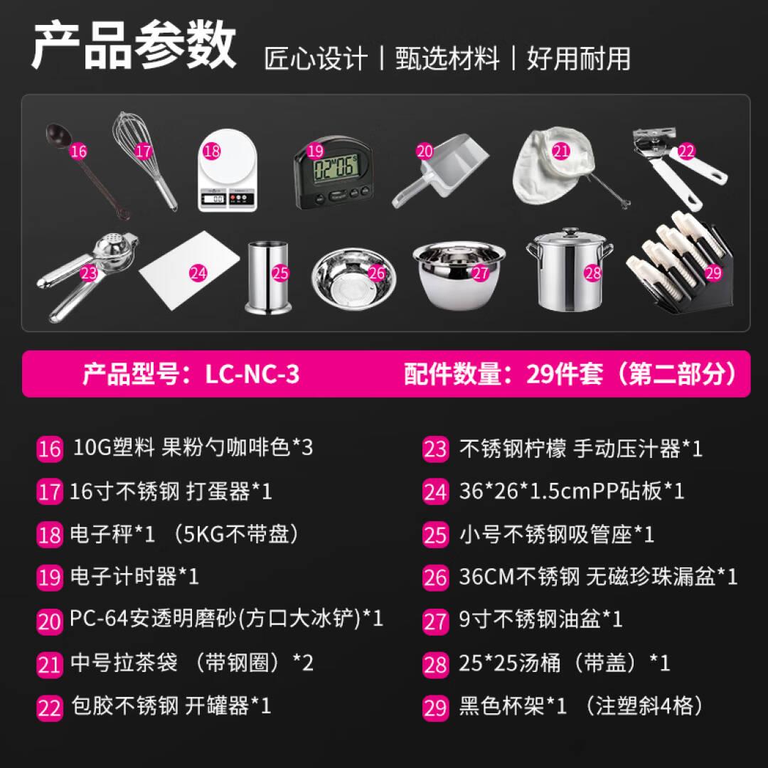 乐创(lecon)奶茶店配件-入门基础版套餐 打蛋器/计时器/电子秤/开罐器/压汁器/砧板/吸管座/油盘/汤桶 LC-NC-3