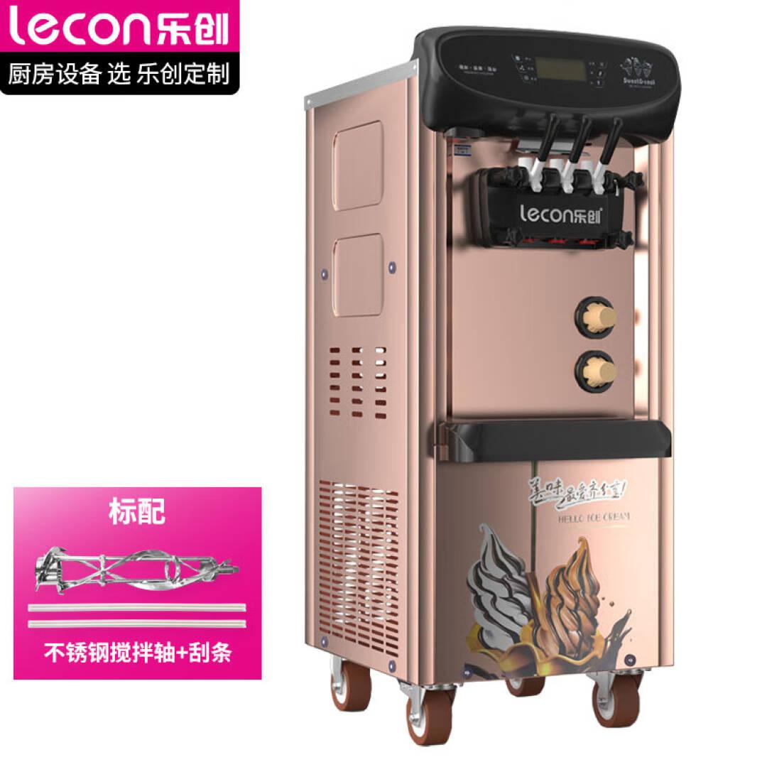 乐创(lecon)冰淇淋机商用双压缩机预冷保鲜7天免清洗软冰激凌雪糕甜筒立式圣代机金色 LC-05XQB7-2