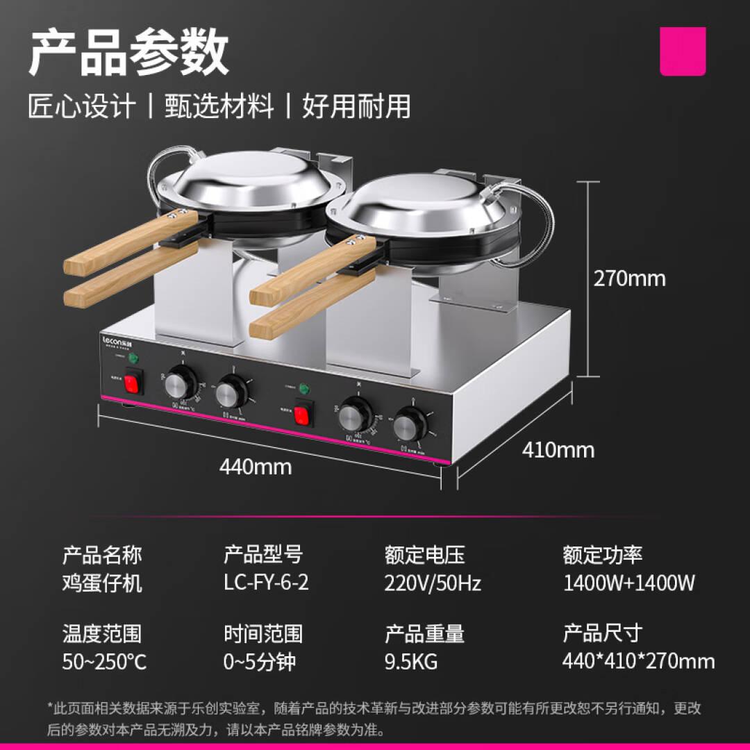 乐创(lecon)鸡蛋仔机商用港式qq蛋仔机家用电热款鸡蛋饼机器烤饼机 双头旋钮款 LC-FY-6-2