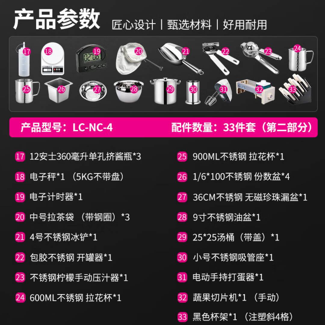 乐创(lecon)奶茶店配件-专业开店版套餐 水果刀/温度计/电子秤/油桶/汤桶/料盒/打蛋器/切片机/吸管座 LC-NC-4