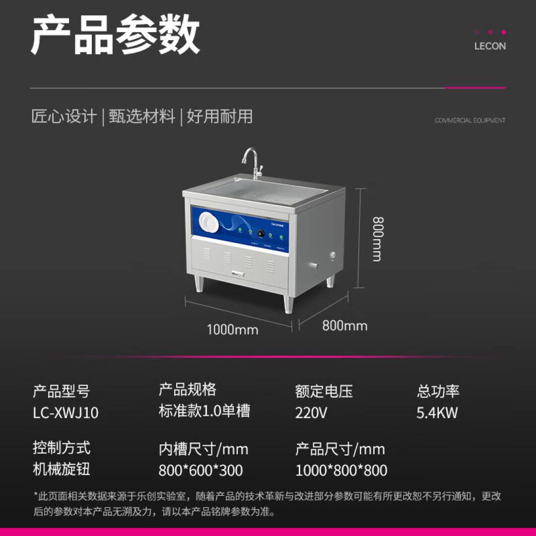 乐创(lecon)超声波洗碗机商用全自动大型家用洗碟机酒店用1.0米超声波洗碗机 单槽清洗 LC-XWJ10