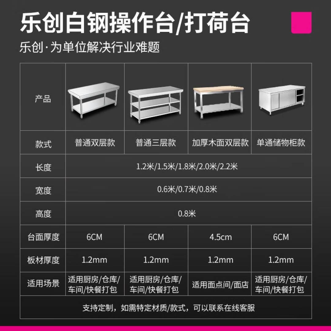 乐创(lecon)201不锈钢工作台 饭店酒店厨房打荷台商用 切菜收纳双层操作台1.2*0.6*0.8米 LC-2CZT126