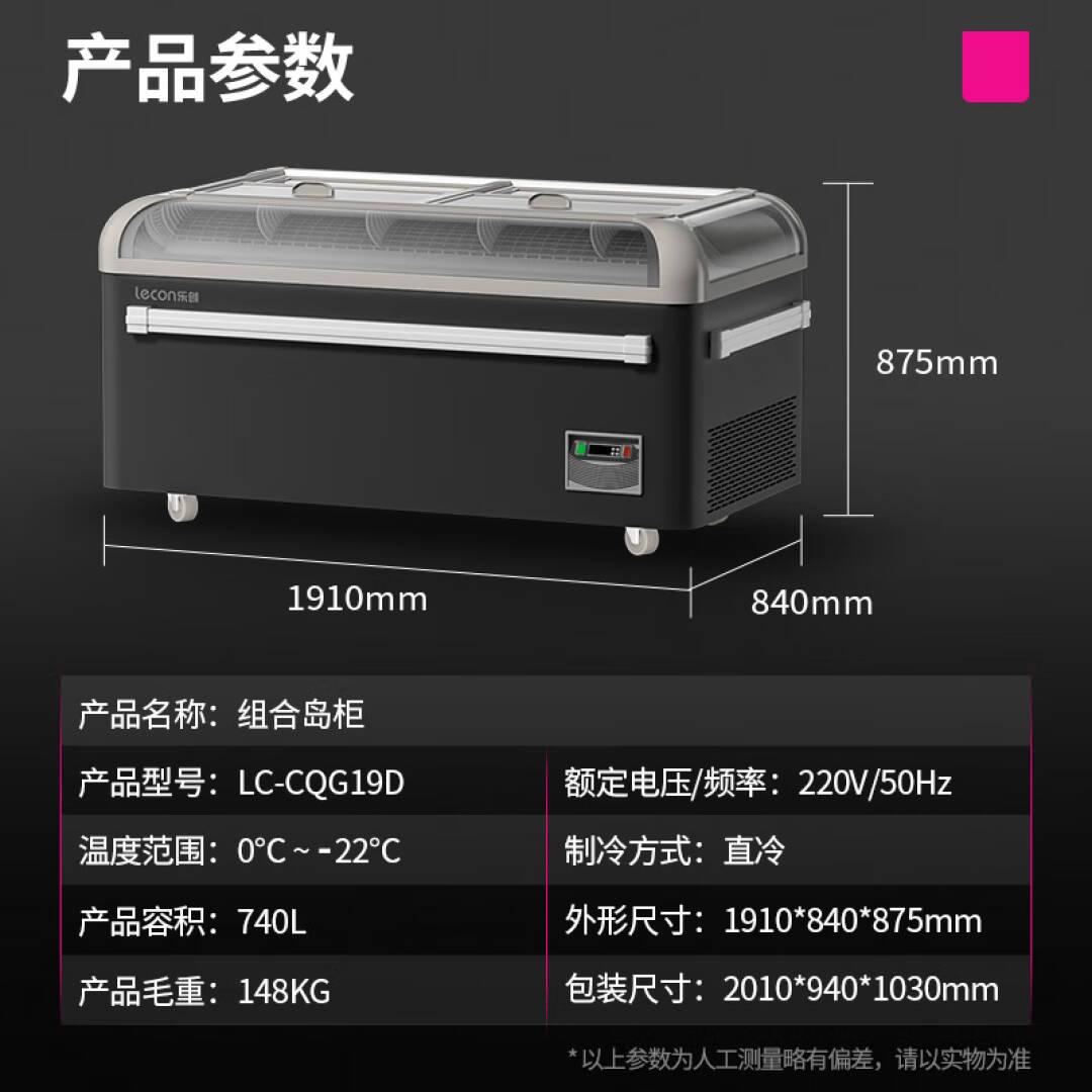 乐创(lecon)冰柜展示柜岛柜冷冻柜前透视组合岛柜自动化霜740L LC-CQG19D
