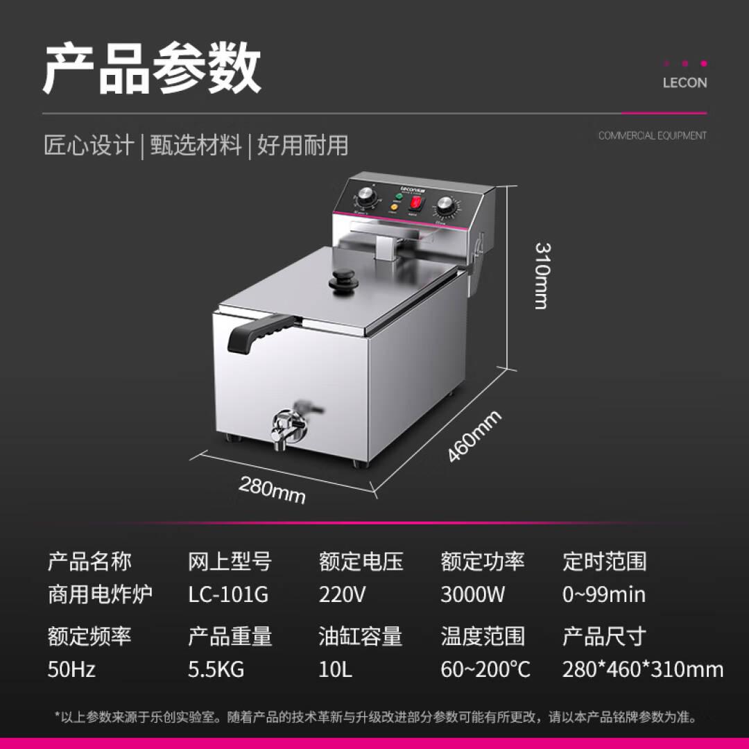 乐创(lecon)电炸炉商用单缸定时大容量油炸锅薯条炸鸡油条加厚电炸锅 10升单缸定时电炸炉 LC-101G