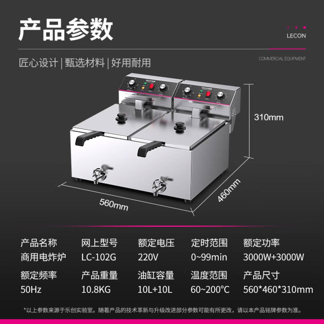 乐创(lecon)电炸炉商用双缸定时大容量油炸锅薯条炸鸡油条加厚电炸锅 20升双缸定时电炸炉 LC-102G