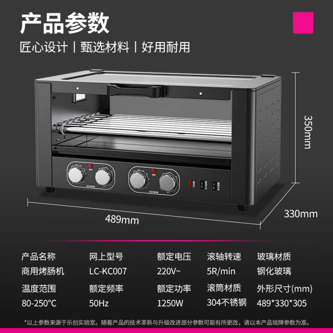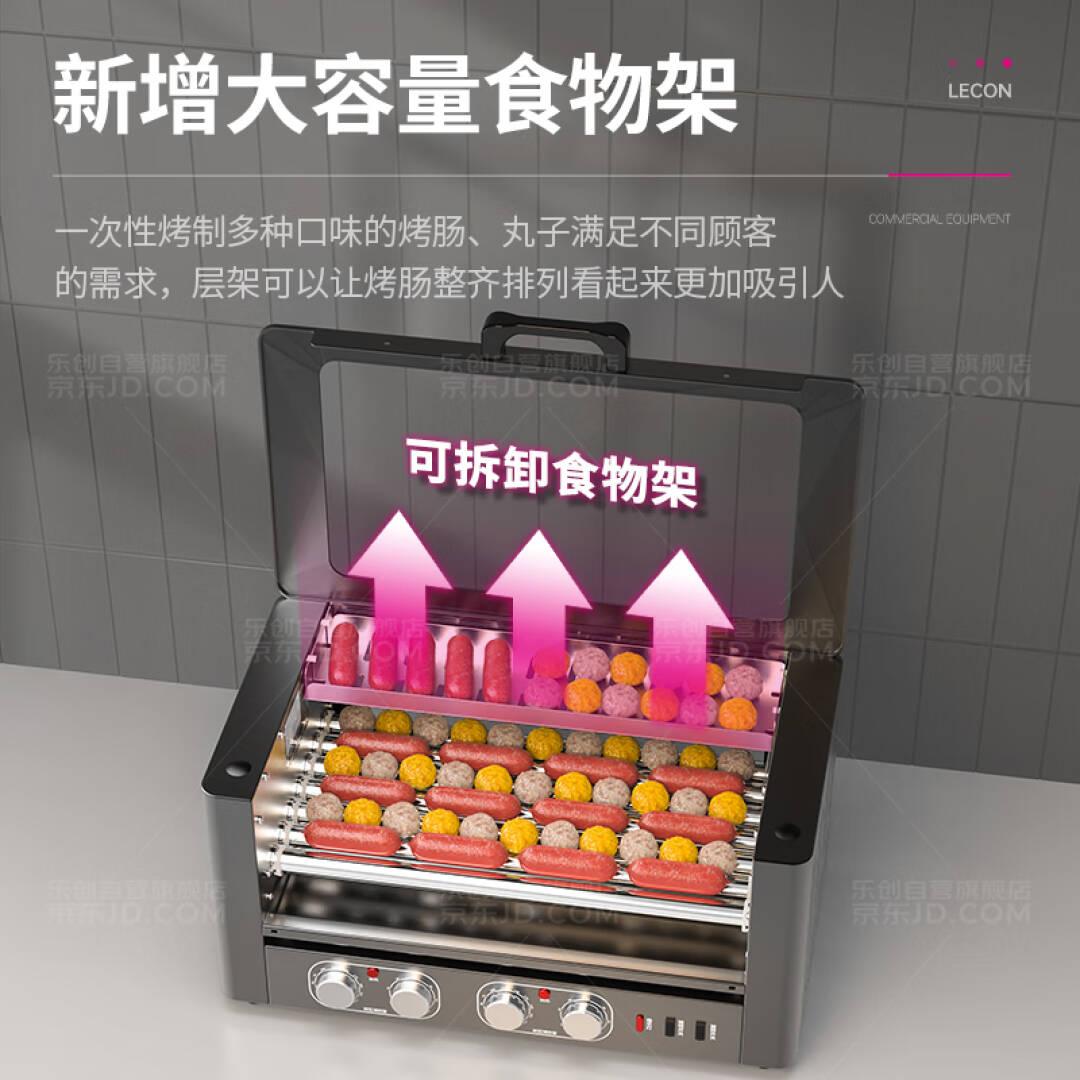 乐创(lecon)烤肠机商用香肠热狗机 7管304钢化玻璃大功率台式烤肠机 带可拆卸食物架 LC-KC007