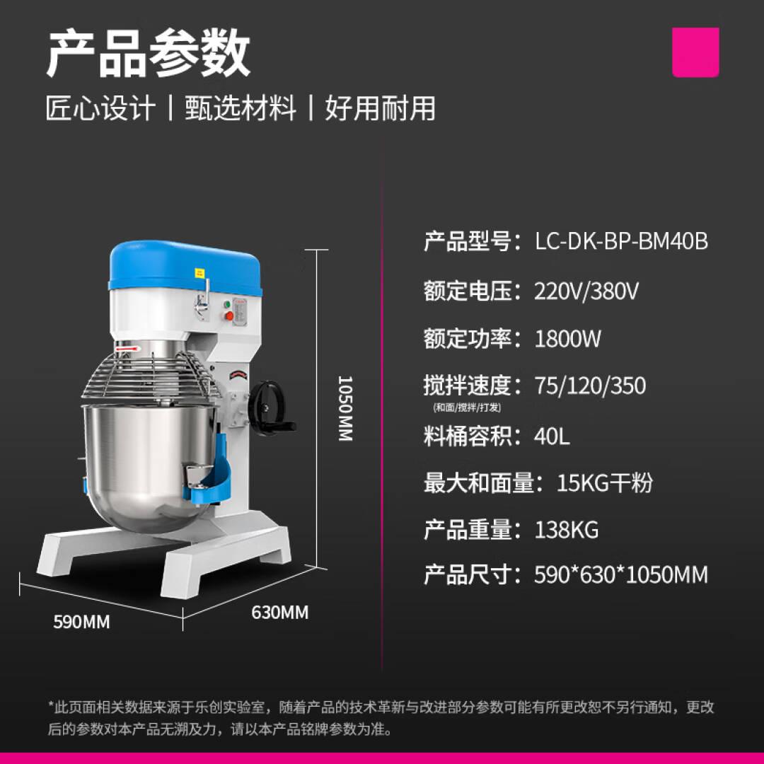 乐创(lecon)和面机商用 搅拌机商用 厨房食堂打蛋机器鲜奶打发奶油厨师机(三合一40L) LC-DK-BP-BM40B