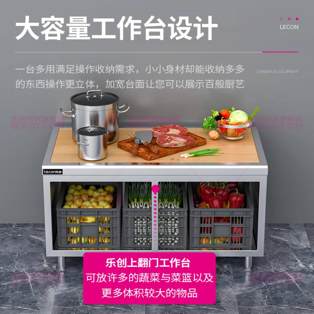 乐创(lecon)商用欧版木面拉门工作台 304型1.5*0.8*0.8米厨房操作台面不锈钢储物柜 LC-DK-EST158S