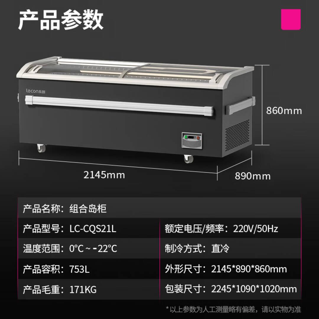 乐创(lecon)冰柜展示柜岛柜冷冻柜左右推拉自动化霜753L LC-CQS21L