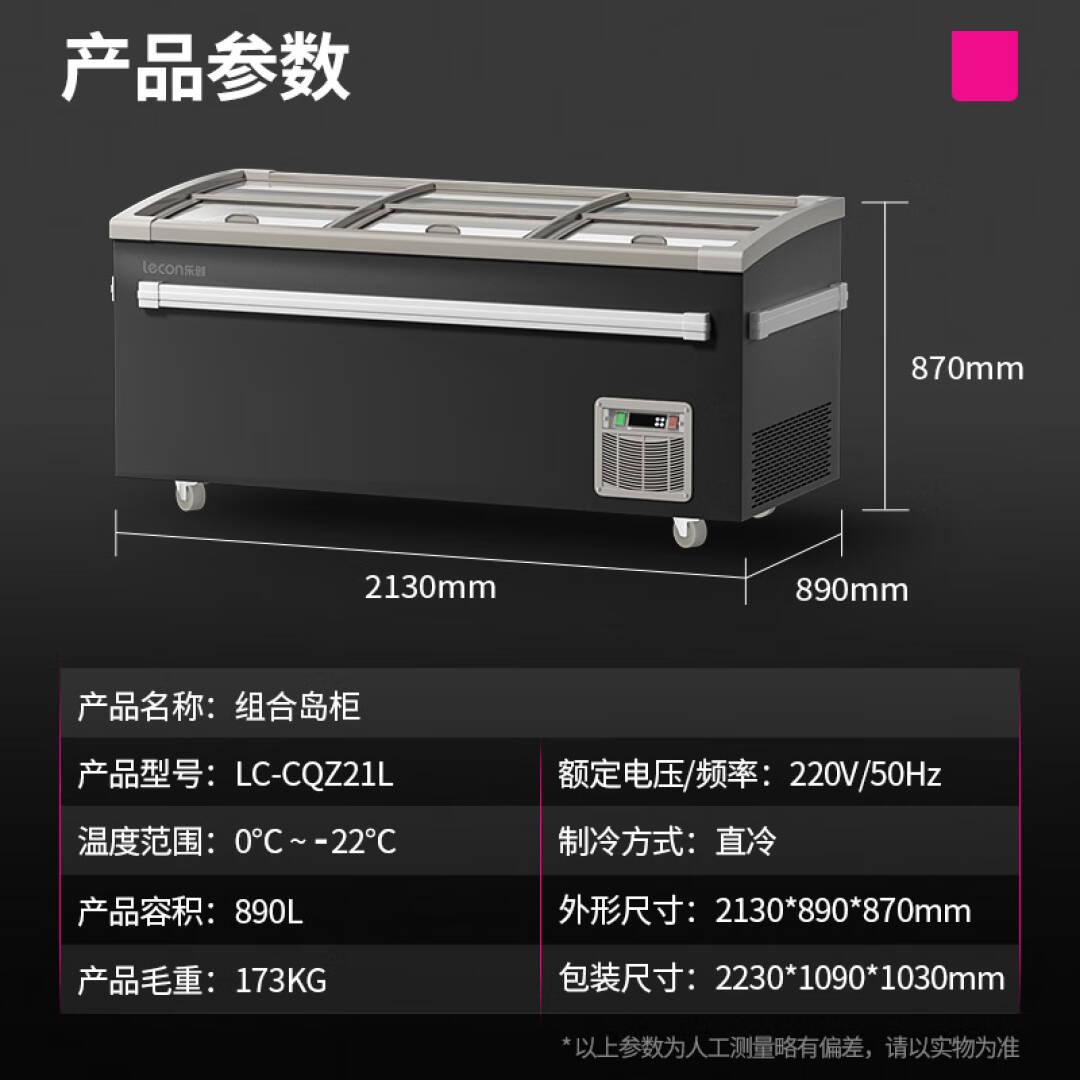 乐创(lecon)冰柜展示柜岛柜冷冻柜上下推拉自动化霜890L LC-CQZ21L