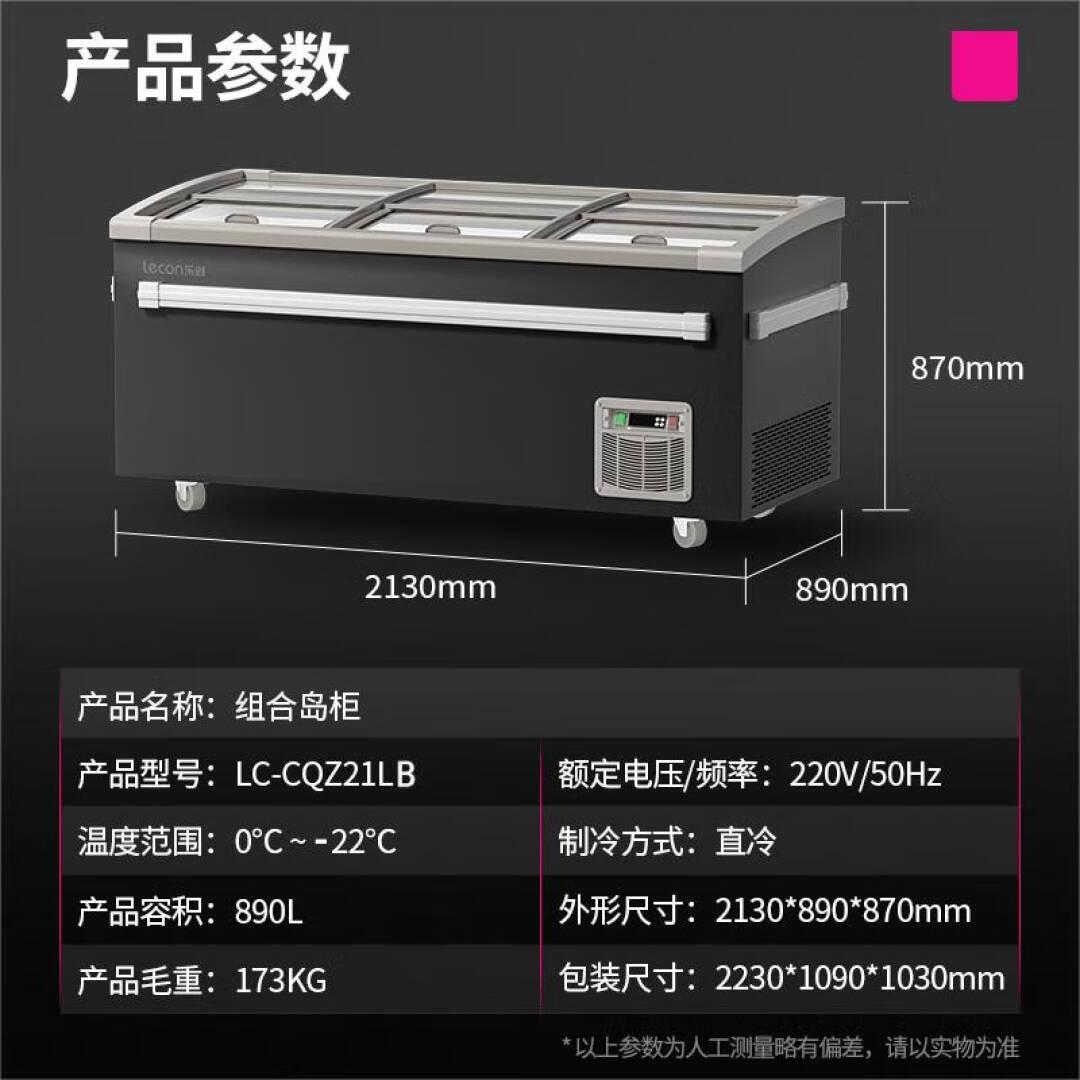 乐创(lecon)冰柜展示柜岛柜冷冻柜上下推拉不化霜890L LC-CQZ21LB