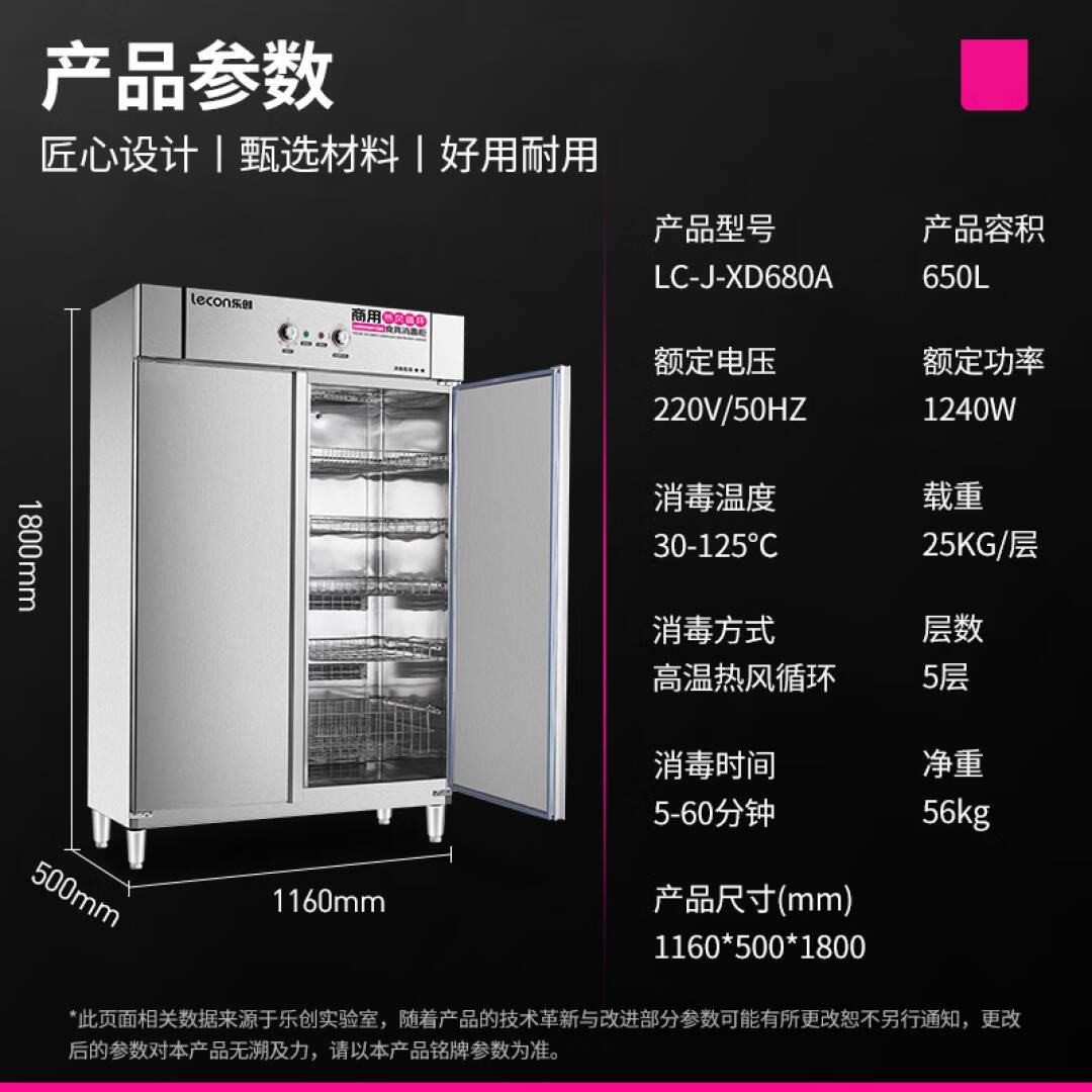 乐创(lecon)商用消毒柜立式大容量消毒柜商用餐饮碗筷双开门高温不锈钢餐具 LC-J-XD680A