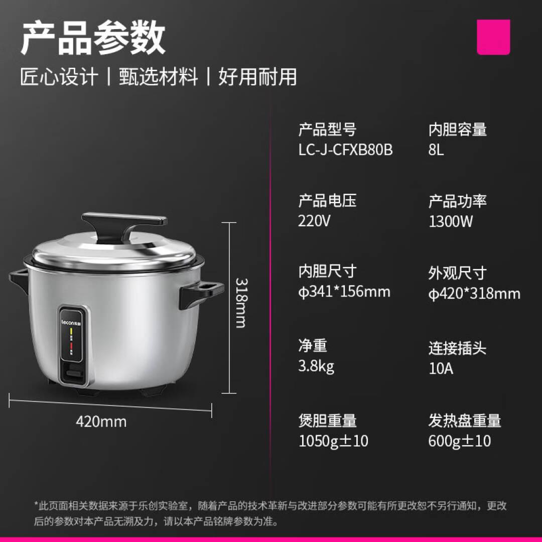 乐创(lecon)商用电饭煲 电饭锅食堂电饭煲单位饭店餐饮家用大电饭煲电饭锅 【8L白灰色特厚内胆】LC-J-CFXB80B