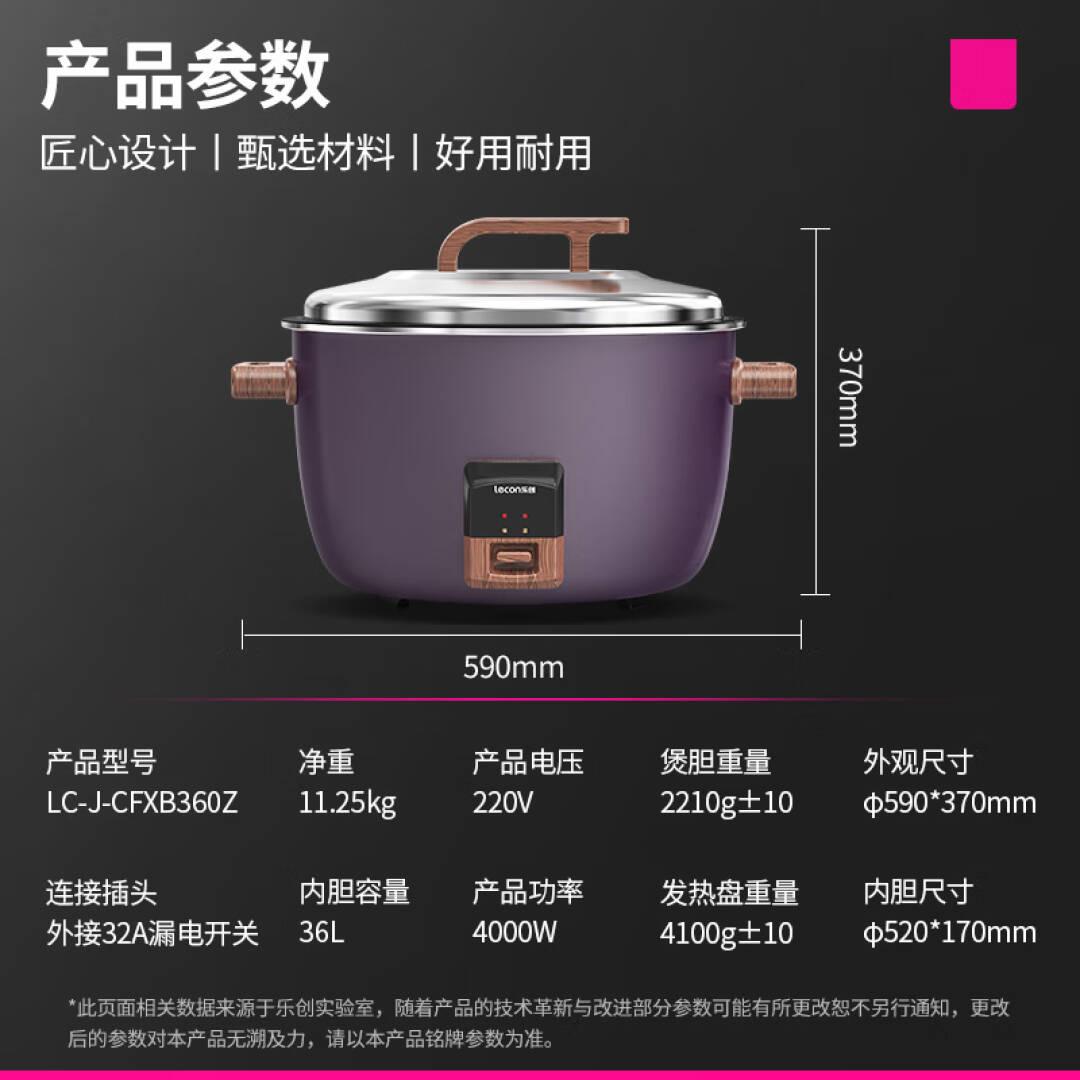 乐创(lecon)商用电饭锅大容量电饭煲食堂用超特大号不粘锅饭店【36L】LC-J-CFXB360Z