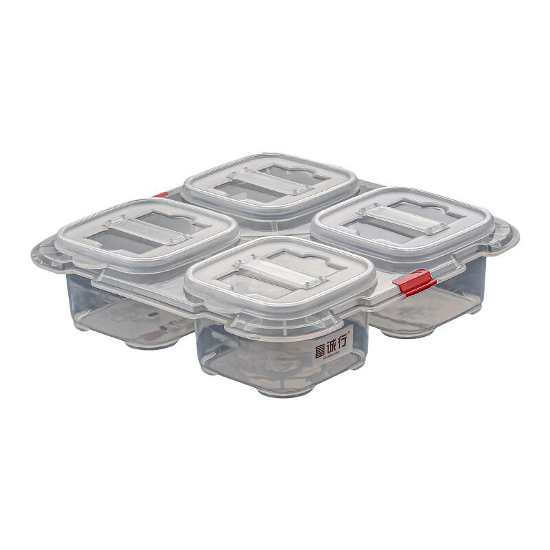 富诚行留样盒食品PP密封透明加厚带盖食堂餐厅食物菜品专用留样 食品留样盒250ml*4格 10套/组