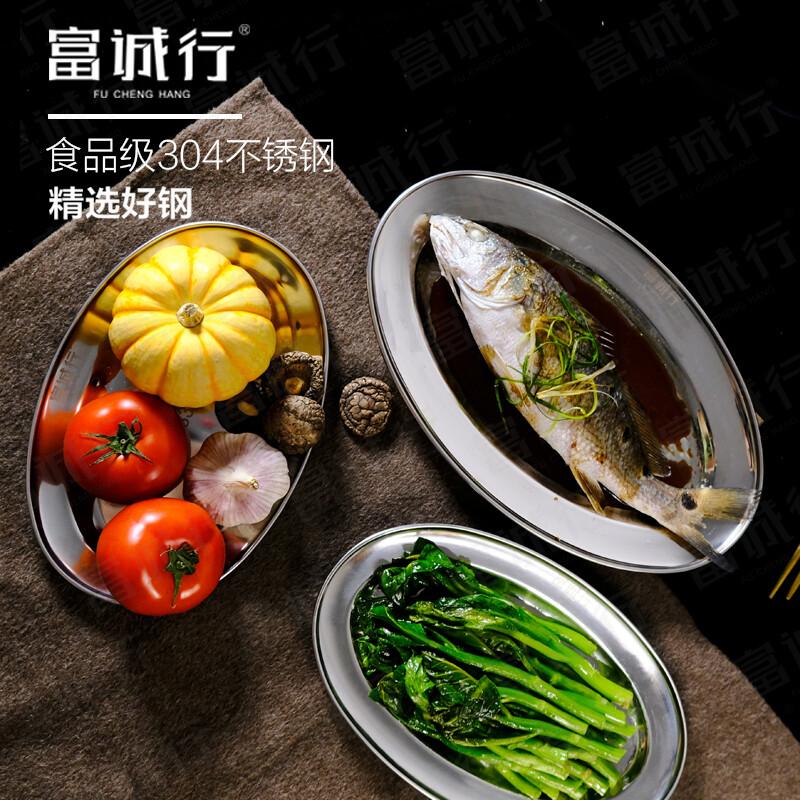 富诚行 加厚不锈钢蒸鱼盘 蛋形盘子 2个装 35cm 单位:组