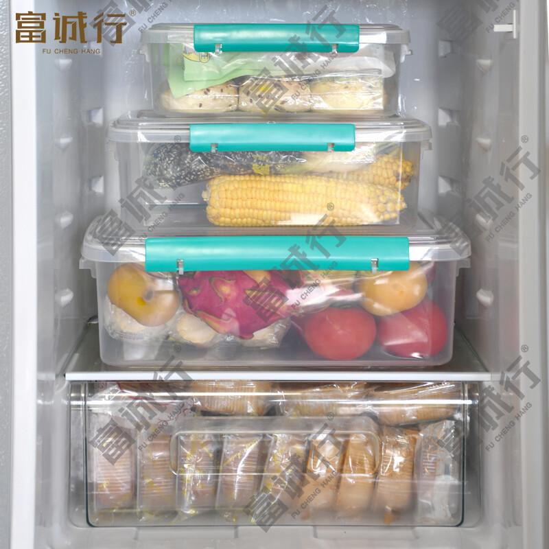 富诚行 塑料保鲜盒 水果便当盒 厨房收纳盒 冰箱冷冻储物盒子 长方形 385*260*140(8.35L) 6个/组