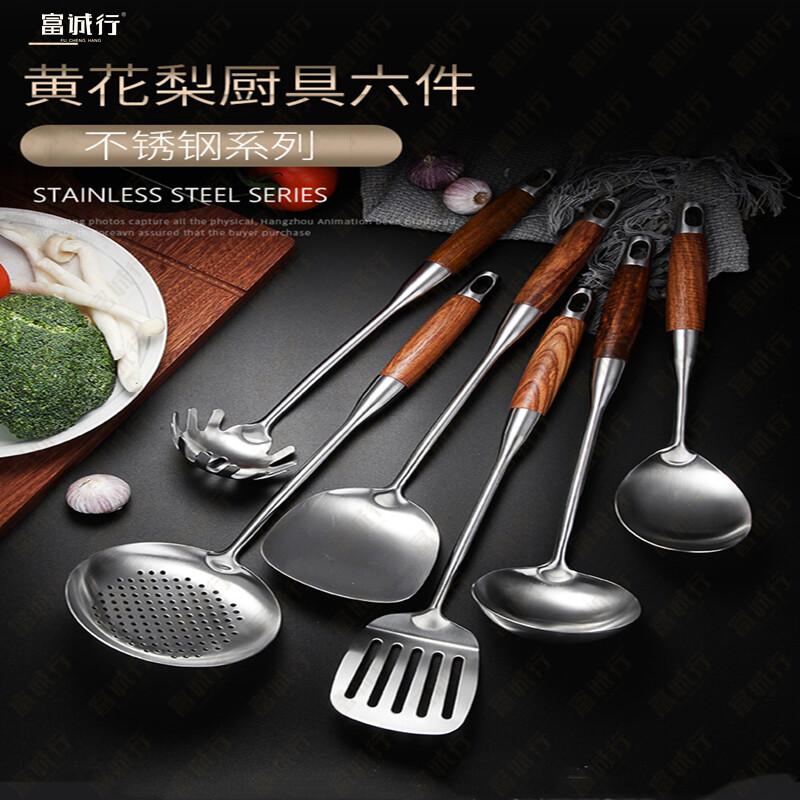 富诚行 黄花梨木质不锈钢锅铲套装勺子六件组合 粉耙 单位:个
