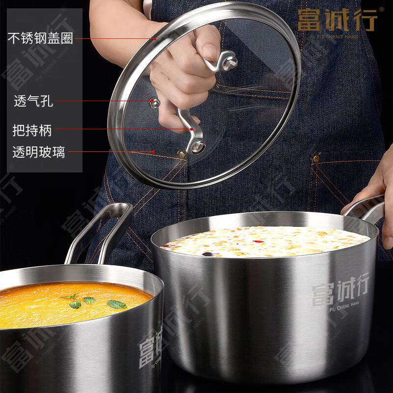 富诚行 不锈钢复合底单柄汁锅厚底奶锅酱汁料理汤锅电磁炉用 配玻璃盖 16cm 单位:个