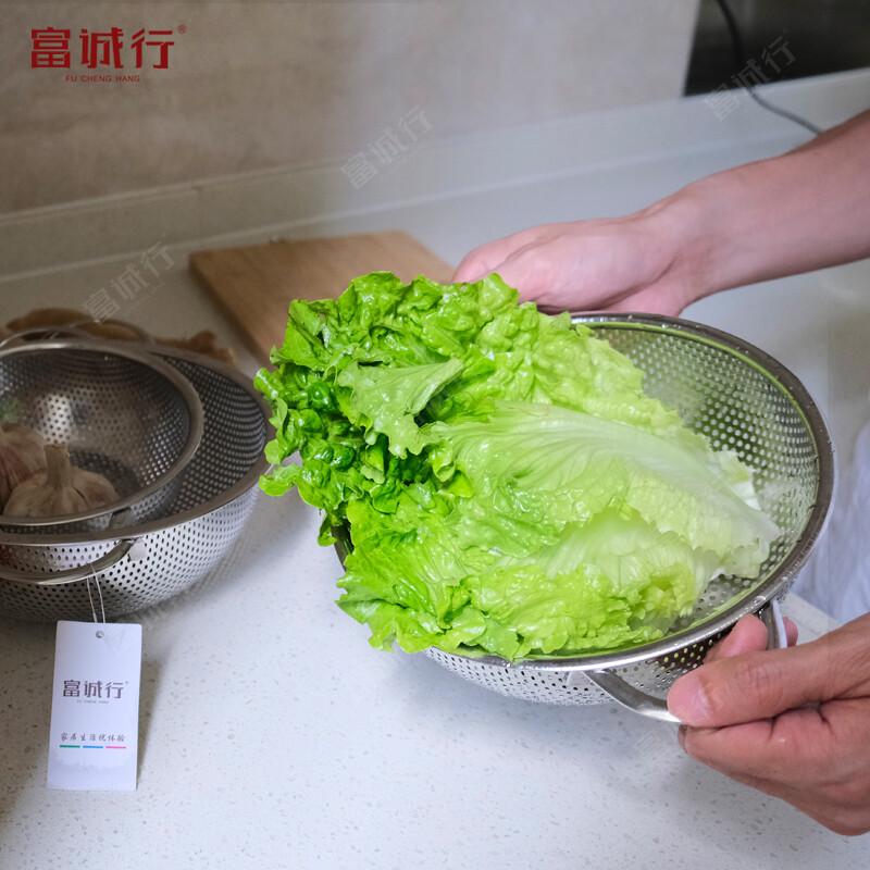 富诚行 不锈钢沥水盆 漏盆 米筛 水果篮 厨房淘米 密孔多用篮 加厚双耳 19.5cm