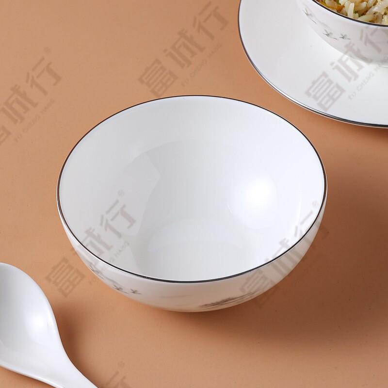 富诚行 陶瓷碗盘套装 餐具套装 商用家用微波适用 秀丽山河系列 九龙碗4.5英寸