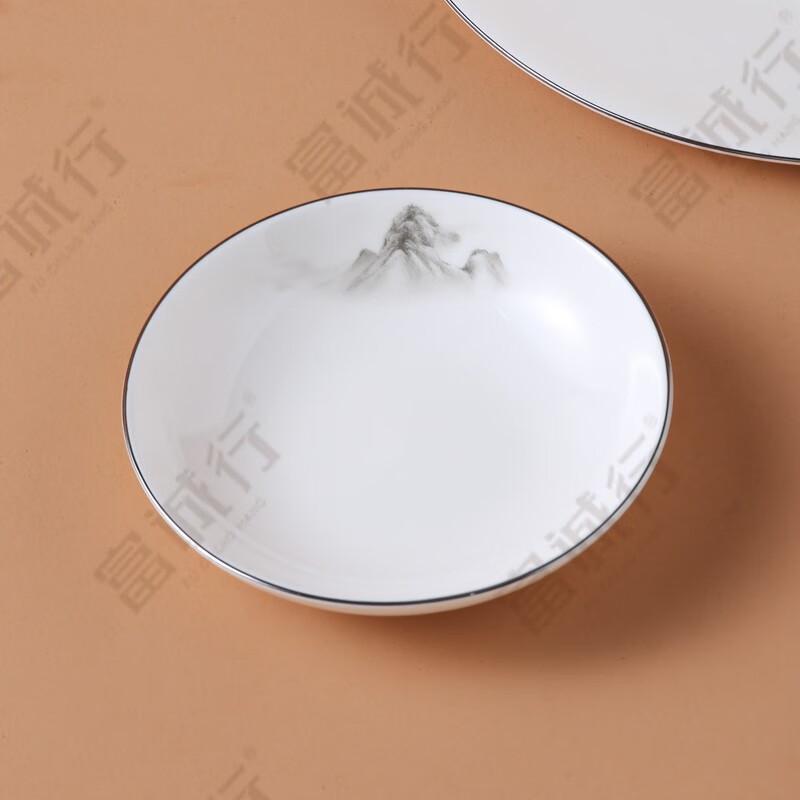 > 富诚行 陶瓷碗盘套装 餐具套装 商用家用微波适用 秀丽山河系列 汉碟4英寸