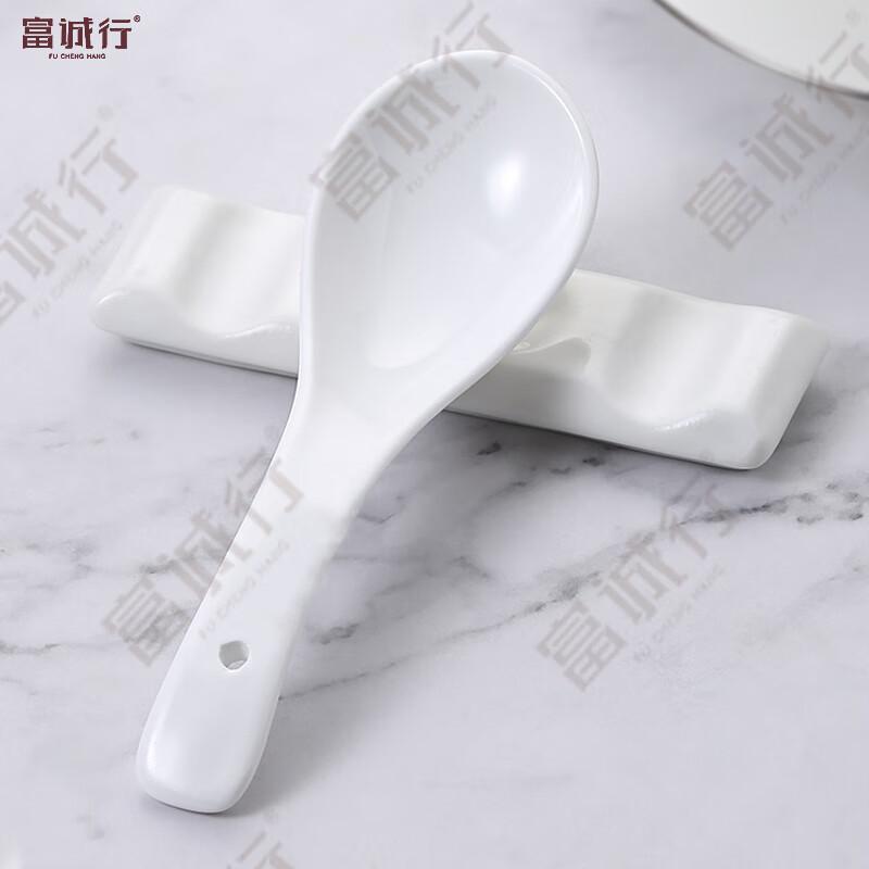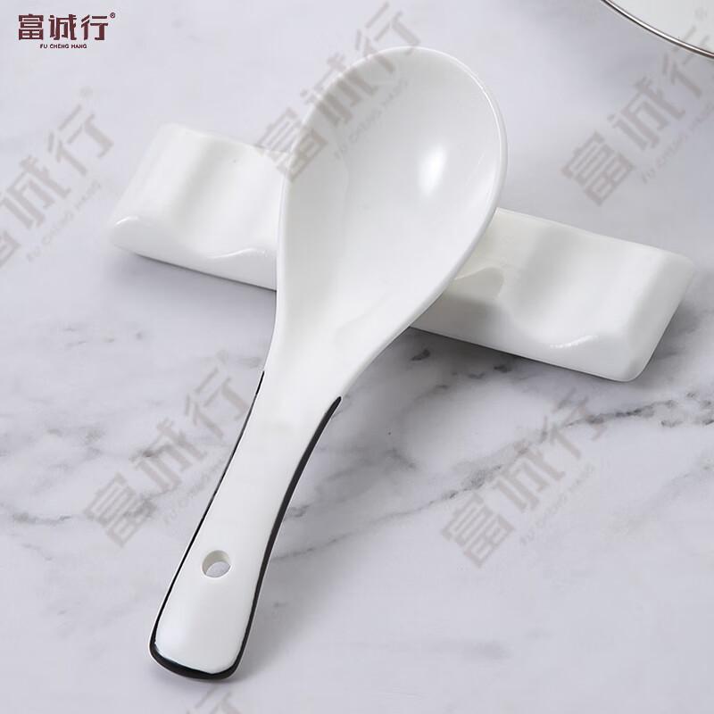 富诚行 汤勺 纯白陶瓷勺子 三湾勺 2个/组 单位:组