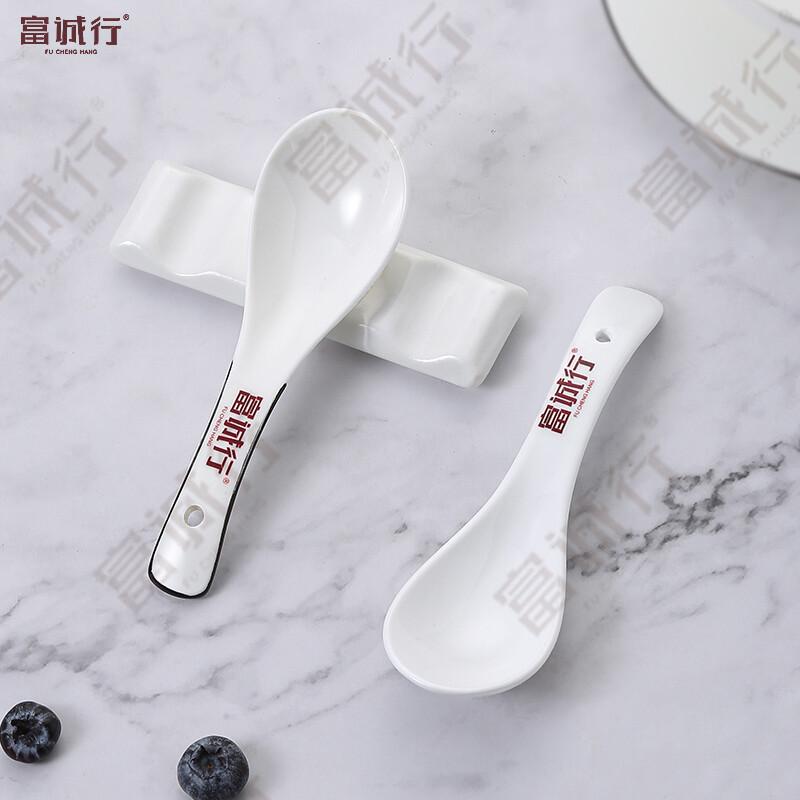 富诚行 汤勺 纯白陶瓷勺子 黑色线条陶瓷勺 2个/组 单位:组