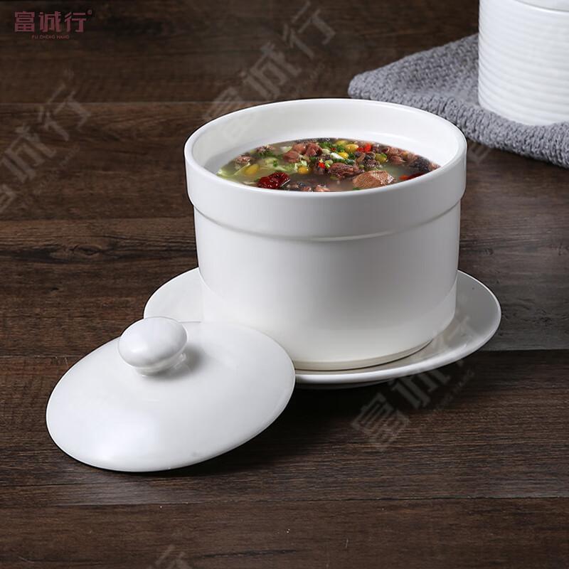 富诚行 陶瓷炖盅 陶瓷碗带盖FCH-DZ101/FCH-DZ102 4.5英寸纯白款(配碟)