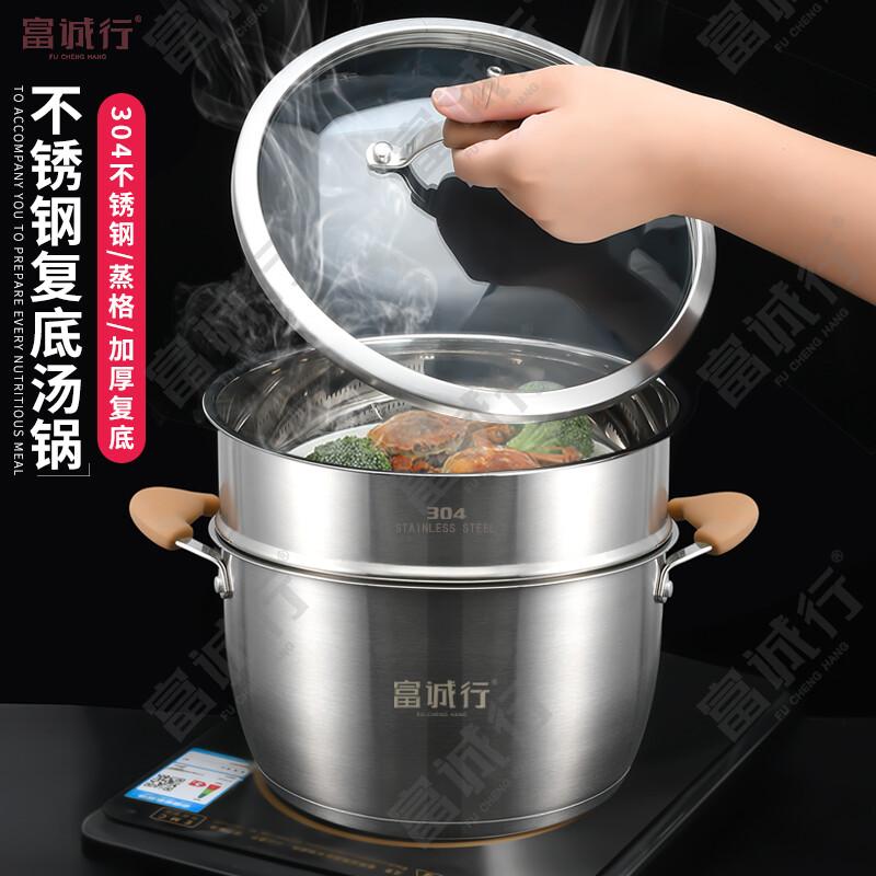 富诚行 304不锈钢复底汤锅 燃气明火电磁炉通用 24cm 汤锅(单个) 单位:个