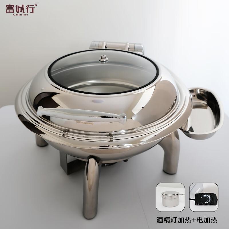 富诚行 商用自助餐炉布菲炉保温炉 玻璃可视机械缓冲 双加热 A2款 长方形 9L 双盘
