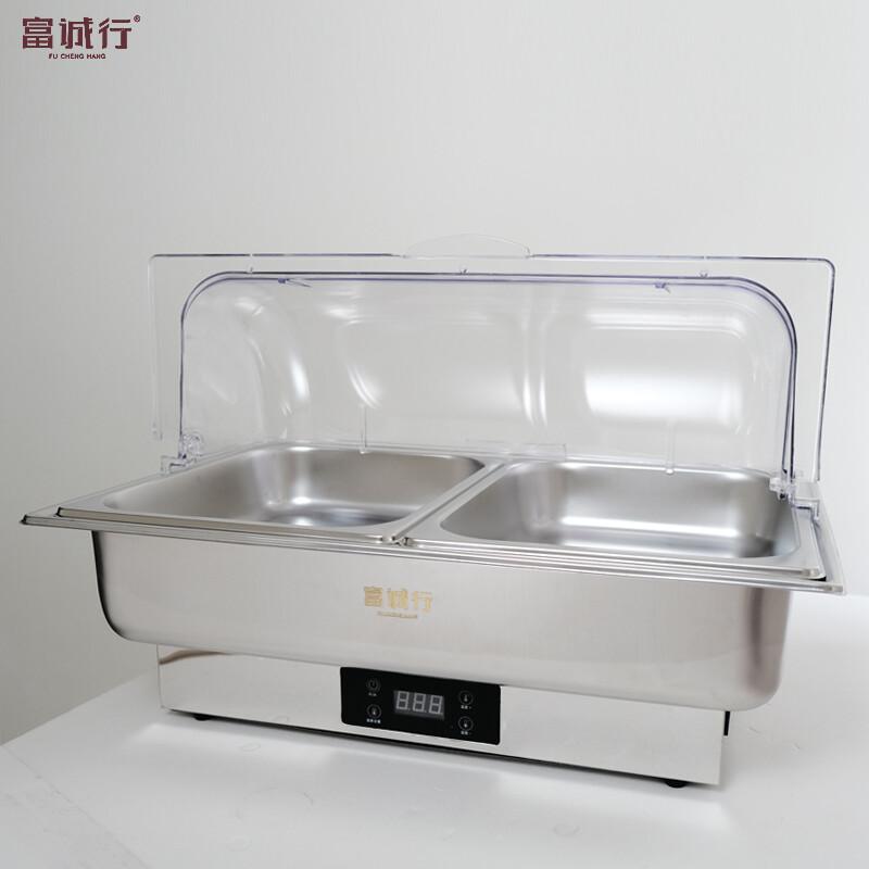 富诚行 商用自助餐炉布菲炉保温炉早餐炉 长方形翻盖款 9L 1/2盘 A6 不锈钢双加热款