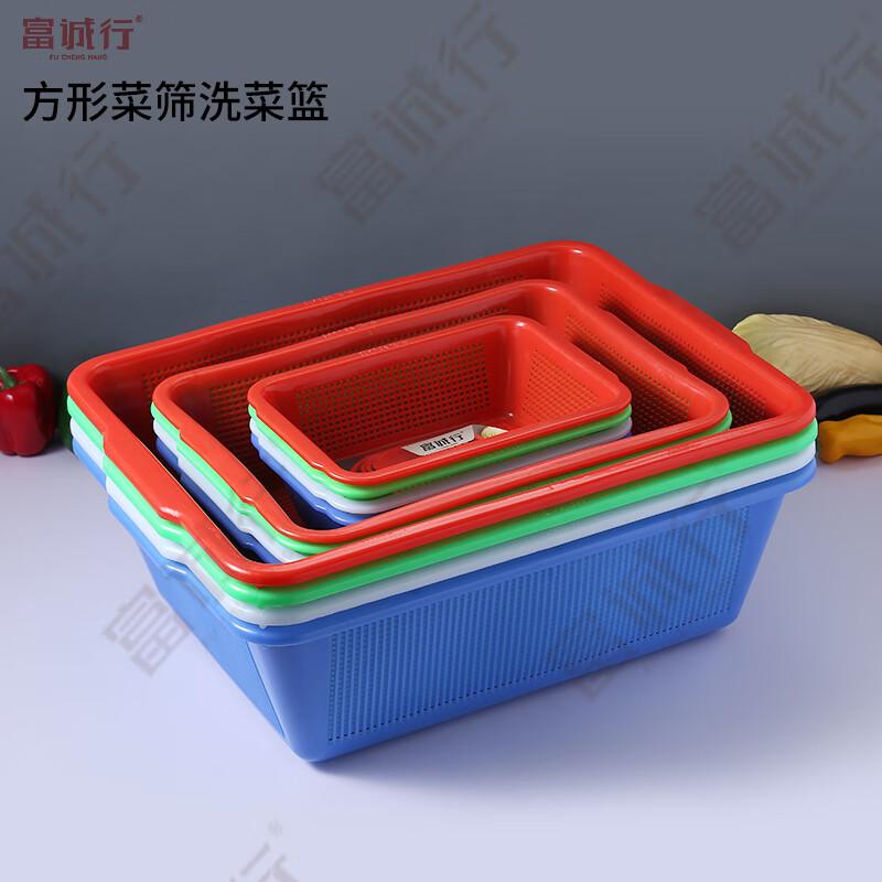 > 富诚行 方形菜筛洗菜篮塑料篮子 白色 620#276*200*85mm