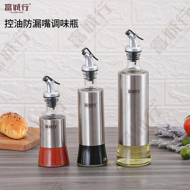 富诚行 不锈钢玻璃油壶 调料瓶 油醋瓶 控油防漏嘴调味瓶 250ml(单个装) 单位:个