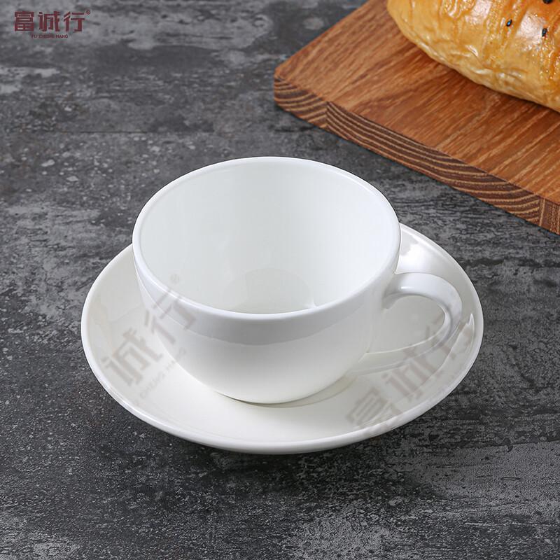 富诚行 陶瓷杯欧式咖啡杯套装 创意简约家用办公咖啡杯子 纯白1杯1碟 1件套 单位:套