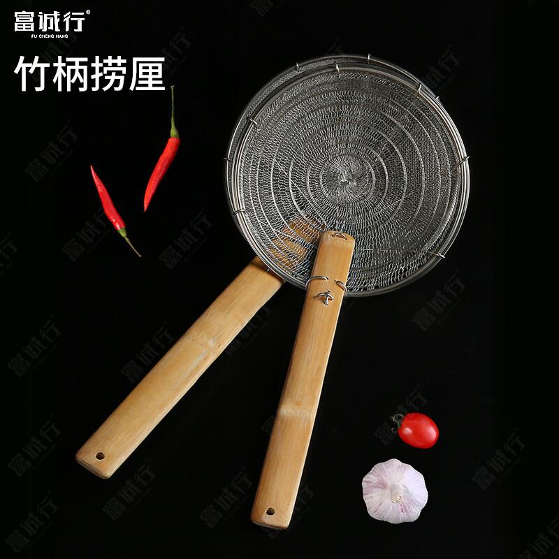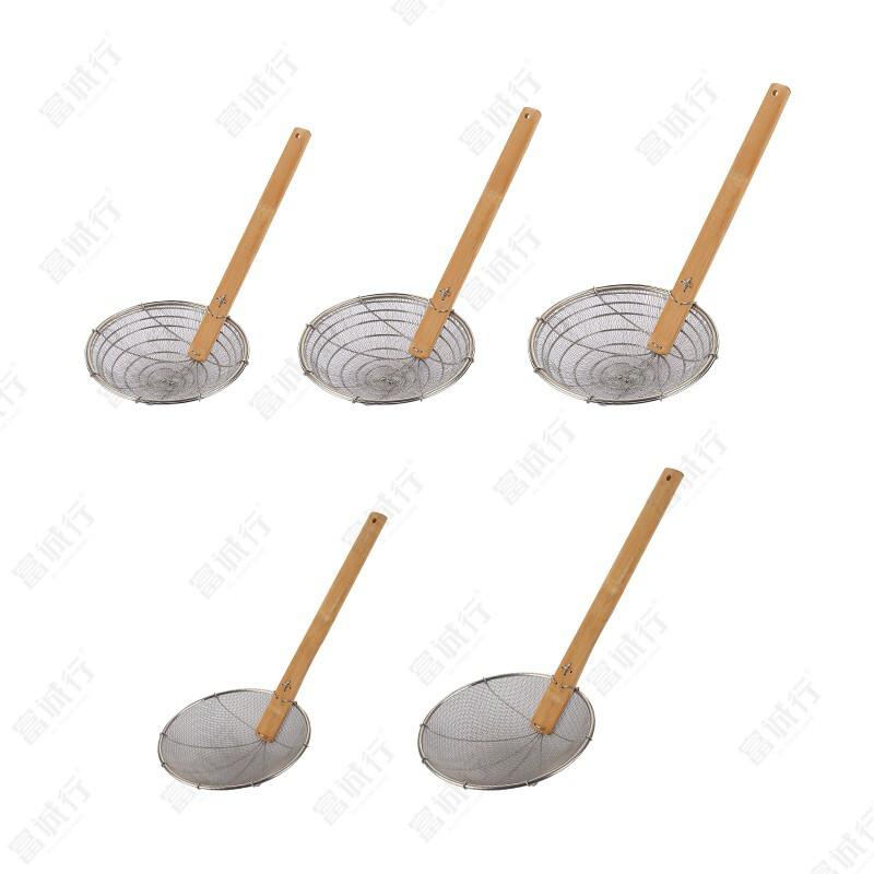 富诚行 竹柄捞厘 钢包边炸喱 漏勺细网 竹柄大漏线漏炸 密喱 过滤网捞面 渣捞漏勺 钢丝网厘 笊篱细 竹柄捞厘 11英寸