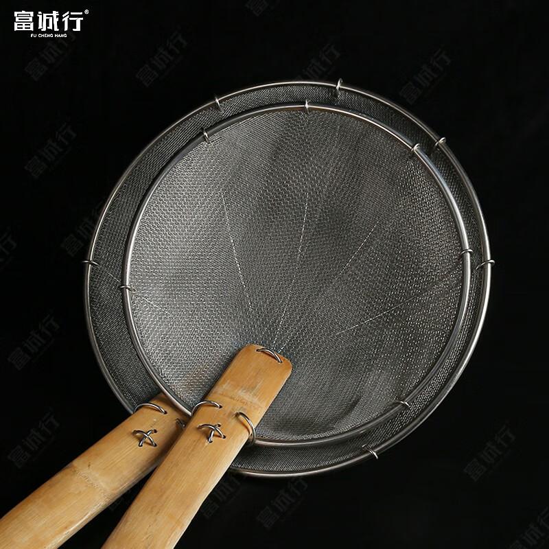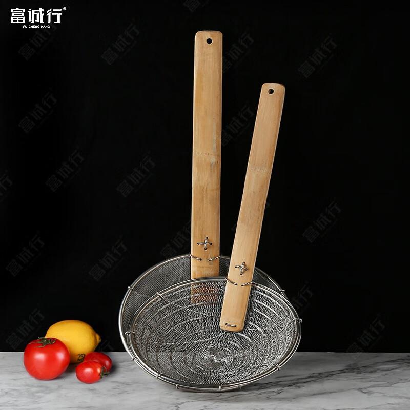 富诚行 竹柄捞厘 钢包边炸喱 漏勺细网 竹柄大漏线漏炸 密喱 过滤网捞面 渣捞漏勺 钢丝网厘 笊篱细 双层钢翅厘 12英寸